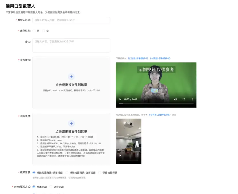 3、新增通用口型数字人训练提交及进度管理(beta版,并需要开通额度后可提交);