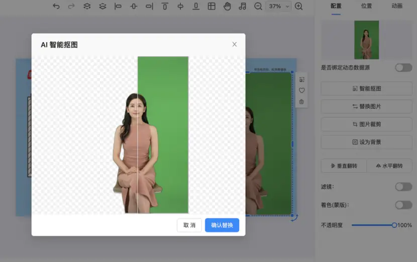 2、新增图片AI背景抠图功能,支持绿幕 实景等背景抠图;