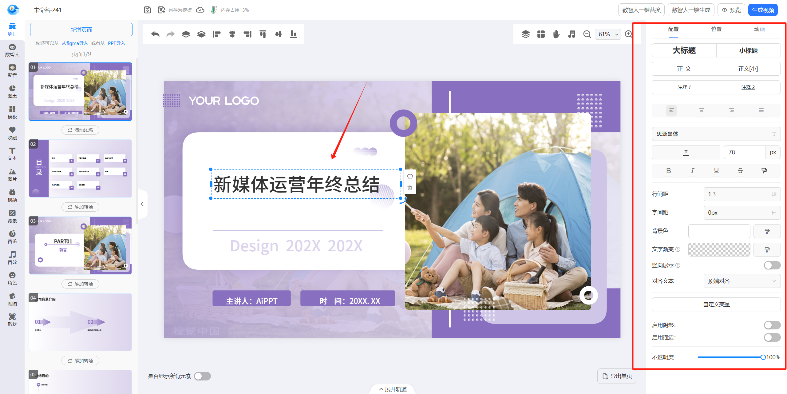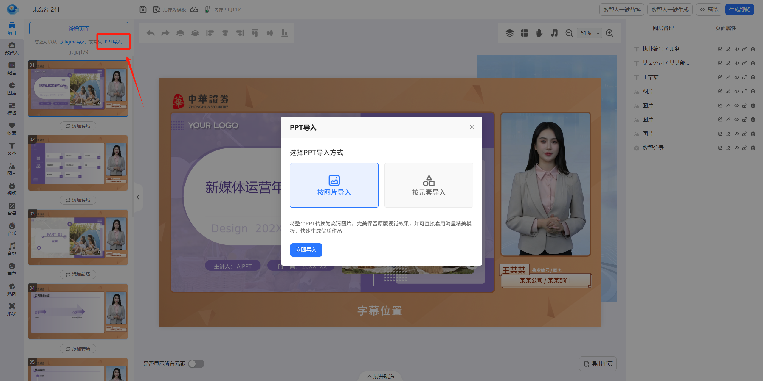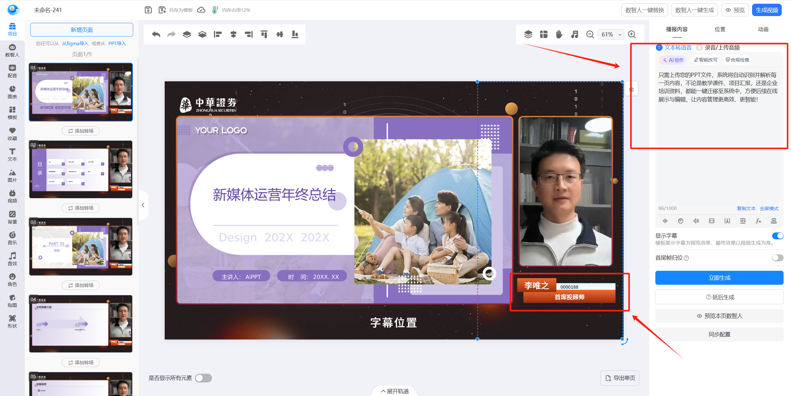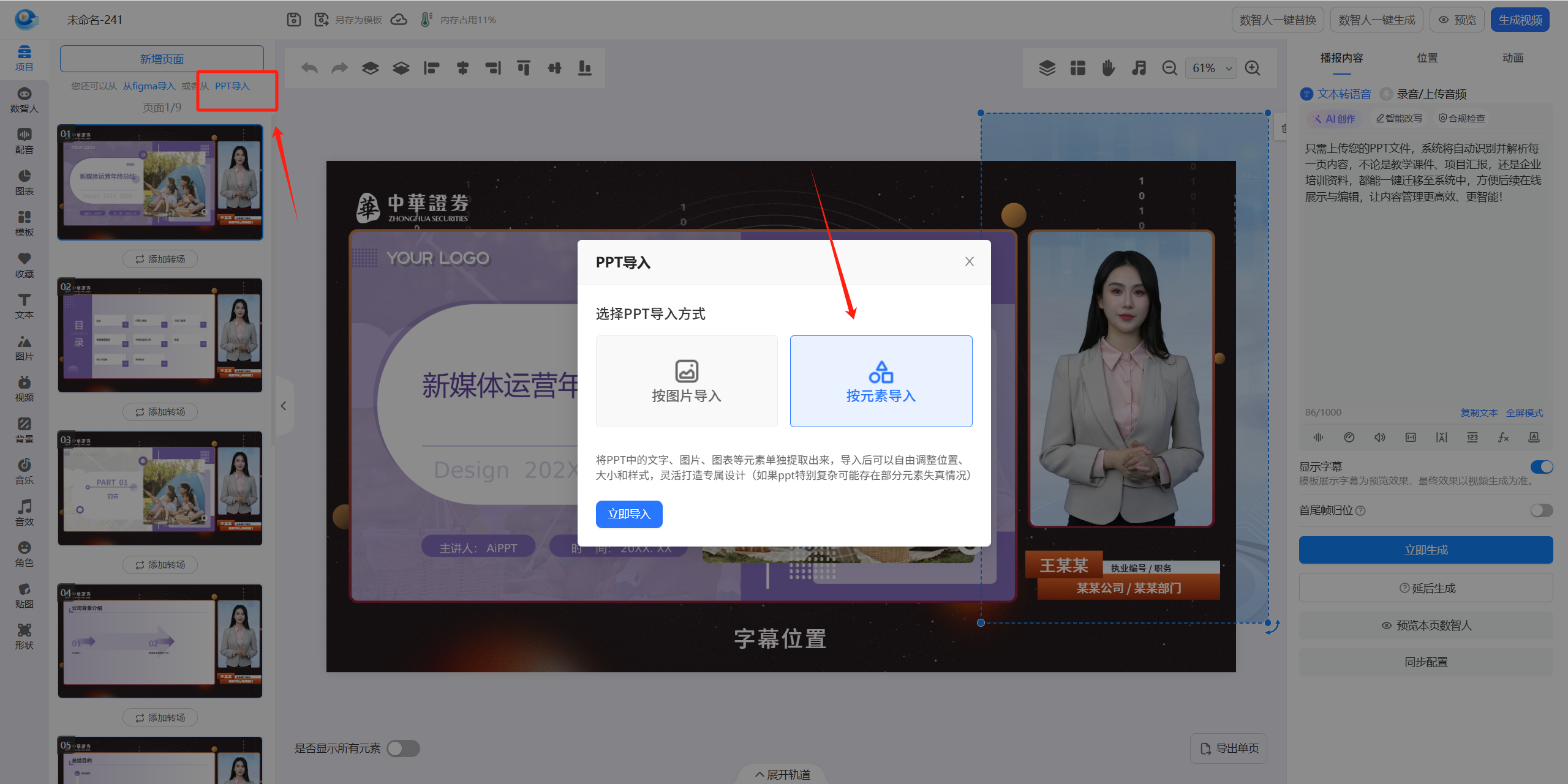 ⚡Step 4 成功导入PPT,修改播报内容生成视频