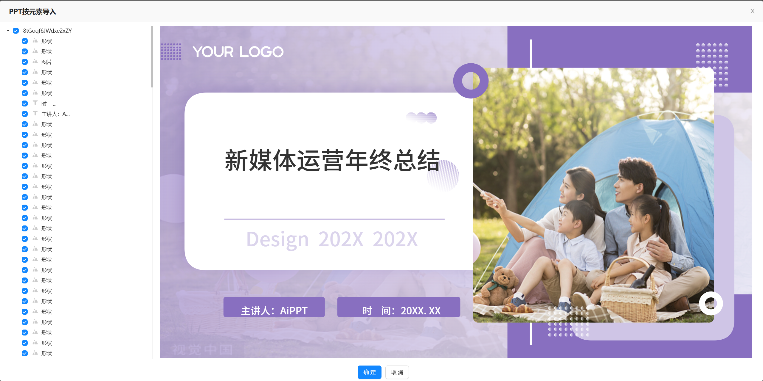 按元素导入: 智能拆解PPT!文字、图片、图表等元素单独提取,导入后自由调整位置、大小、样式,灵活打造你的专属创意设计;