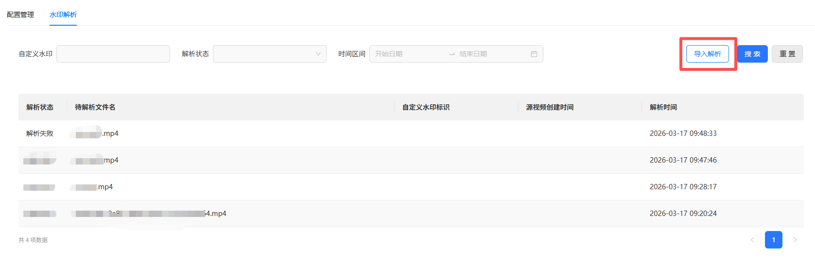 功能入口:【审核管理】-【水印管理】-【水印解析】