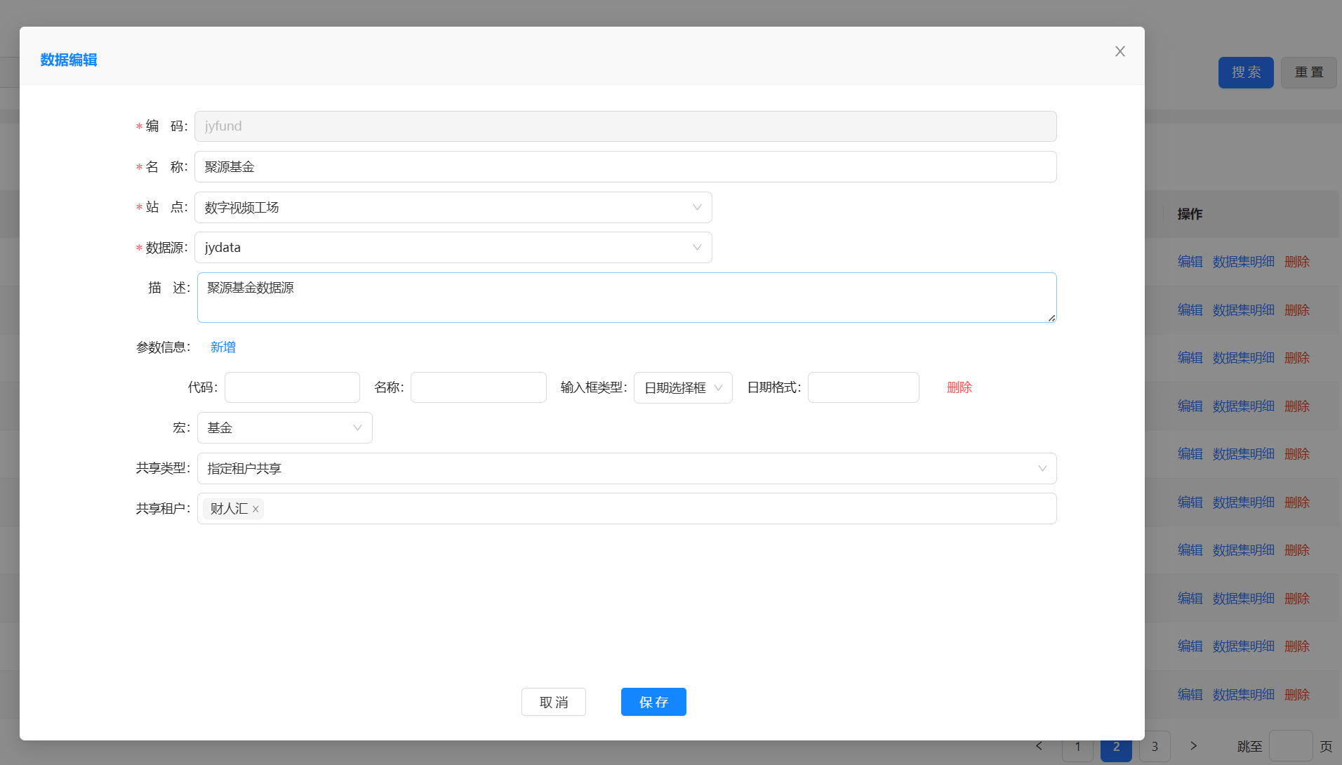 名称:数据集明细名称,配置视频模板选择数据集会显示该名称;