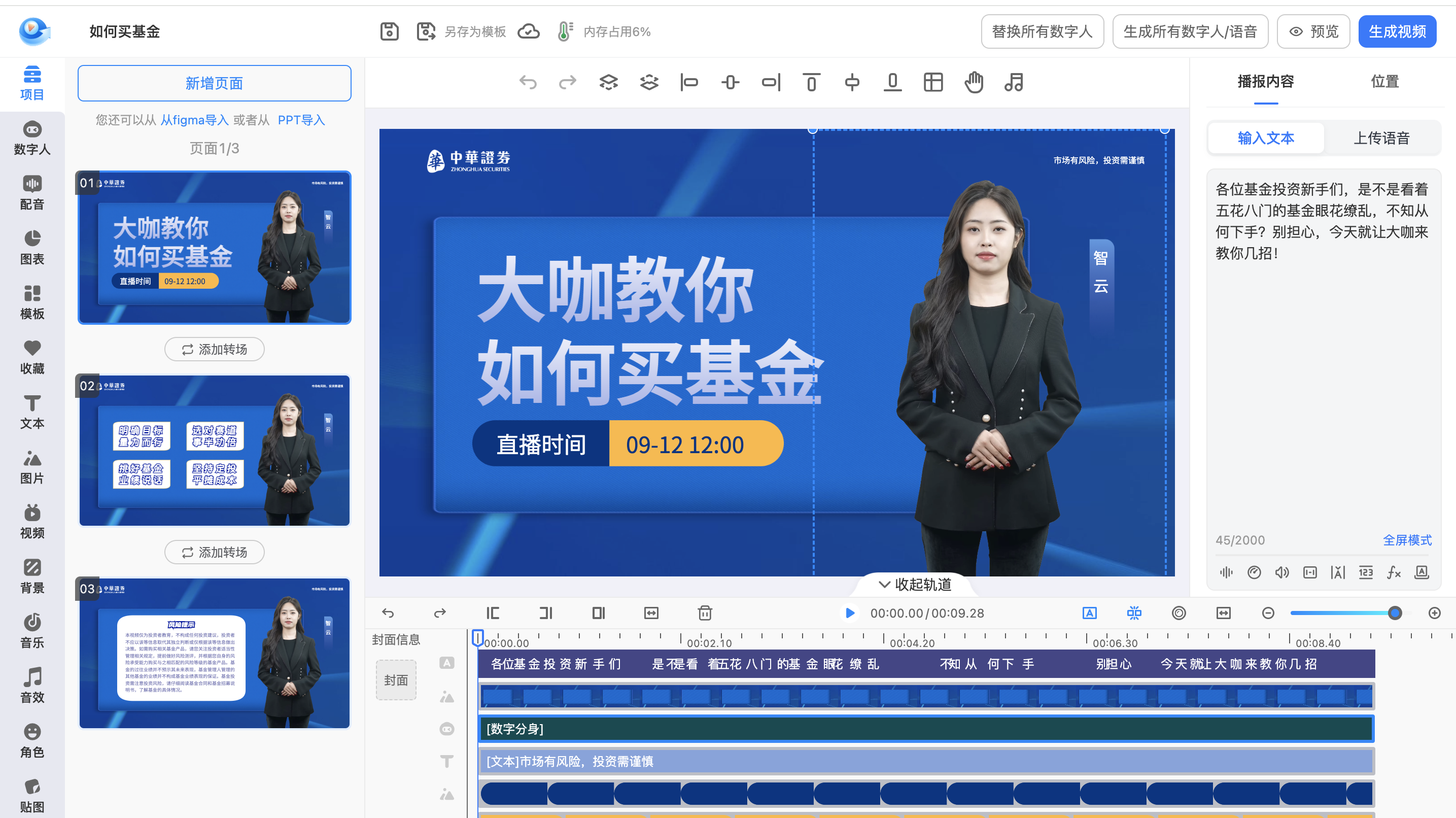 通过一张照片即可训练数智人;该版本主打低价快速,从素材提交后,一般情况下在10分钟后即可使用。