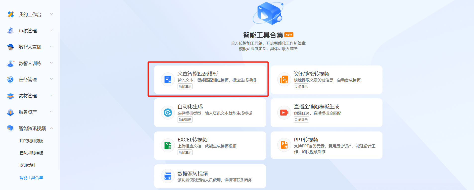 方式二:通过 智能工具合集 - 文章智能匹配模板 使用